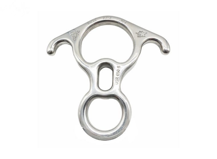 Stainless Steel Big 8 Descender is made from high polished stainless steel. Rigging plate for smooth rope action. Suitable for rope sizes from 11mm to 16mm. Breaking strength is 50kN.
