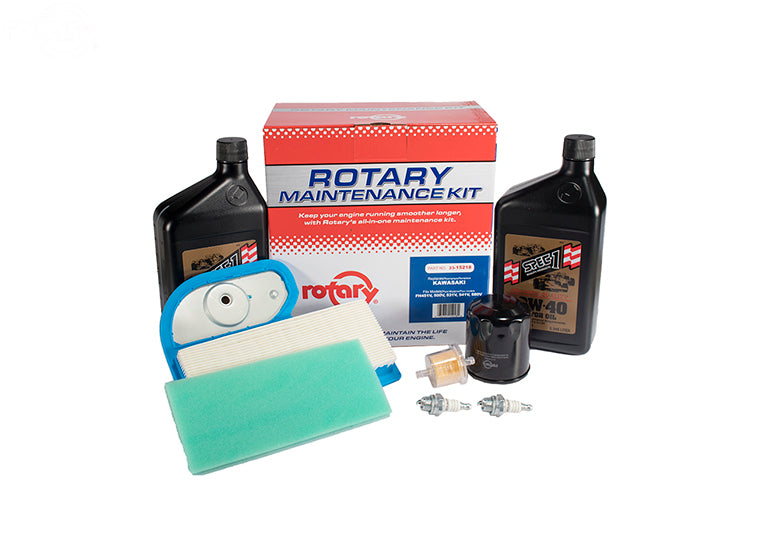 Kawasaki Engine Maintenance Kit fits FH451V, 500V, 531V, 541V, 580V. Replaces 99969-6417, 99969-6141, 99969-6209(A), 99969-6353. Contains 1 each Rotary 9506 (Air Filter), 9611 (Pre Filter), 12864 (Oil Filter), 10352 (Fuel Filter), and 2 each Rotary 7190 (Spark Plug) and 15685 (10W-40 Oil).Replaces: KAWASAKI 99969-6417 KAWASAKI 99969-6141 KAWASAKI 99969-6209 KAWASAKI 99969-6209A...