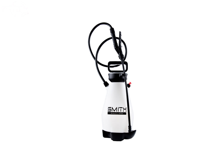 Two gallon manual pump Smith sprayer. Best pump design for performance and tool free, easy maintenance. Heavy duty poly wand offers maximum chemical compatibility. Reinforced kink-resistant hose. Lower base provides protection for nozzles during storage and during transportation. Professional shut-off has internal metal components for longer life performance. Viton seals and gaskets provide maximum chemical resistance. Comes with six nozzles for wide range of chemical applications.