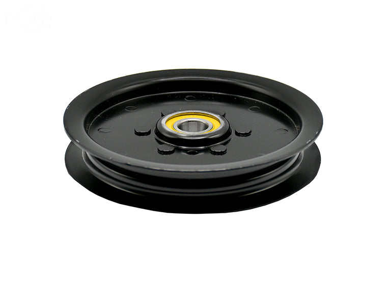 Flat Idler Pulley replaces John Deere AM143737. Fits several John Deere models including Z200 and Z400 series.