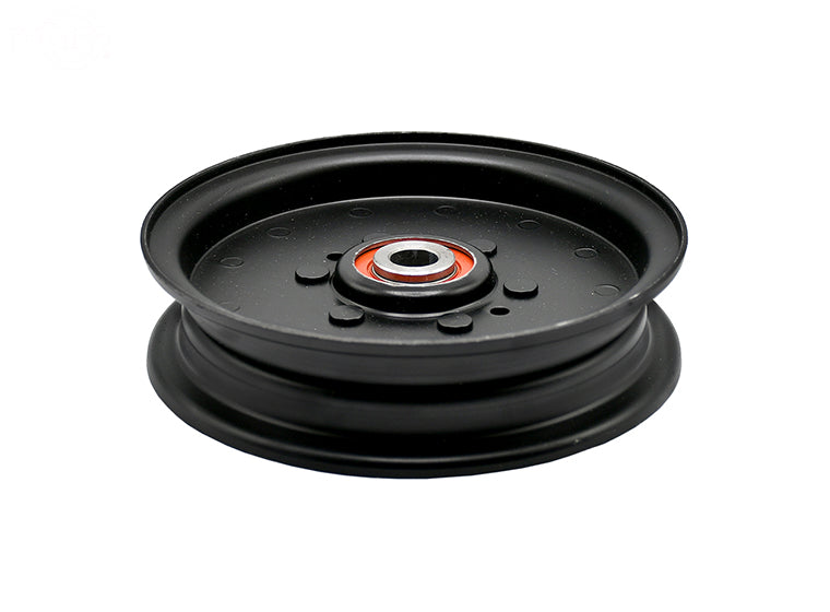 Flat Idler Pulley replaces John Deere AM115933. Fits several John Deere models including Commercial Walkbehinds, 717 and 727 Zero Turns.